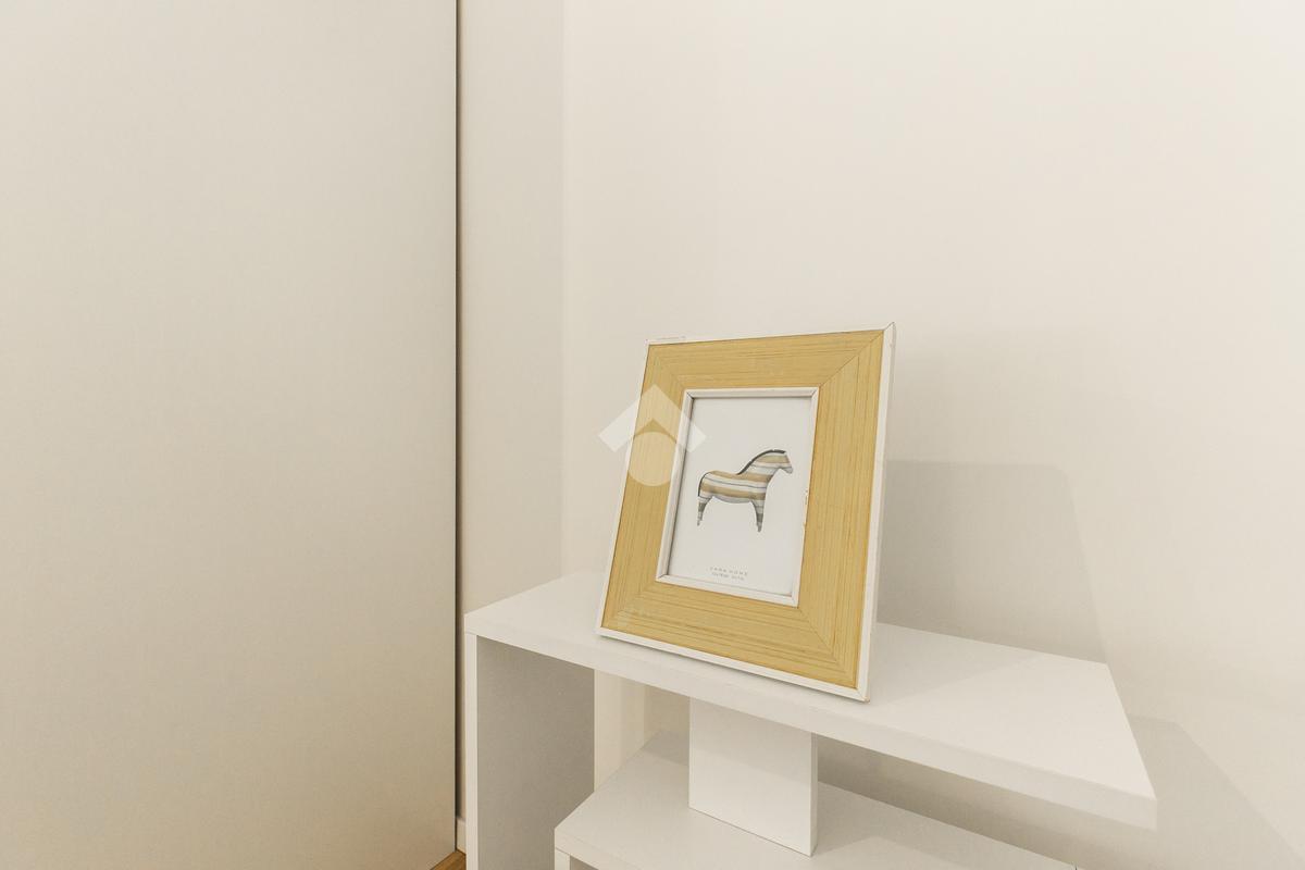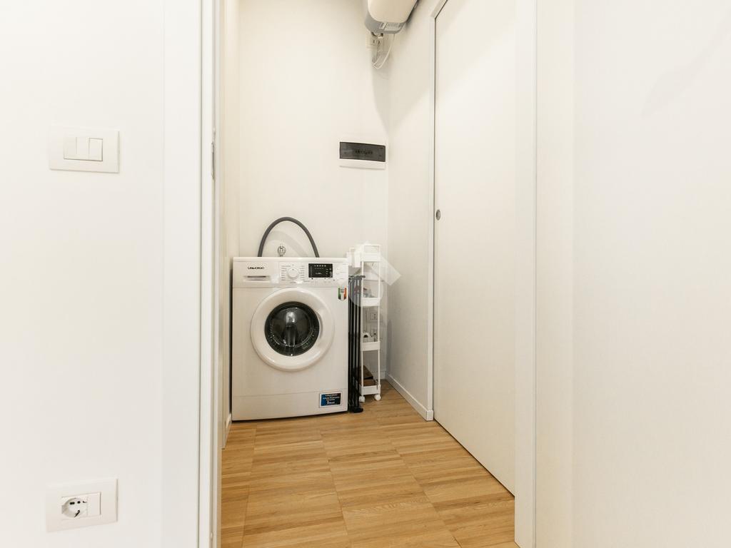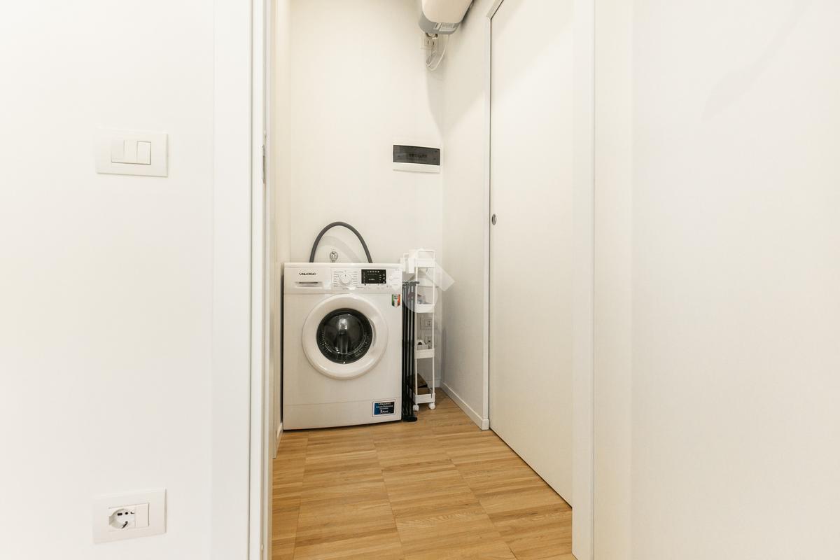 Grazie alle due ampie finestre con esposizione sud, la zona giorno è inondata di luce naturale durante tutto il giorno. Il primo balcone offre un affaccio esterno, mentre il disimpegno separa elegantemente la zona giorno dalla zona notte. La comoda lavanderia e il bagno, dotato di sanitari sospesi e un ampio box doccia, completano questa proposta.