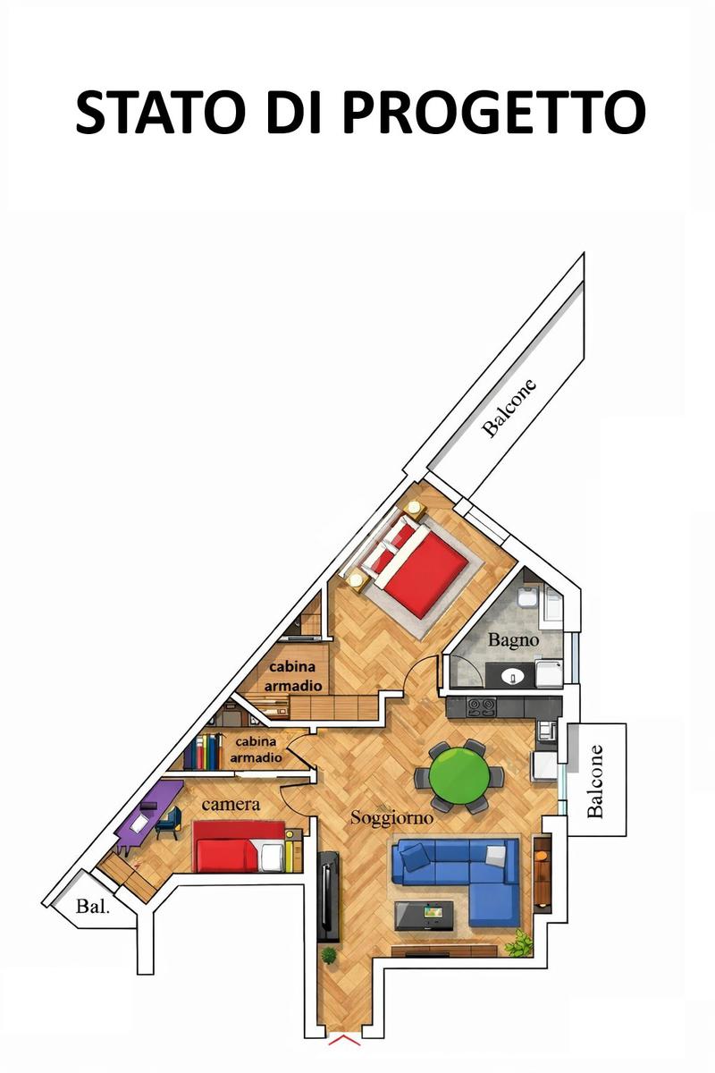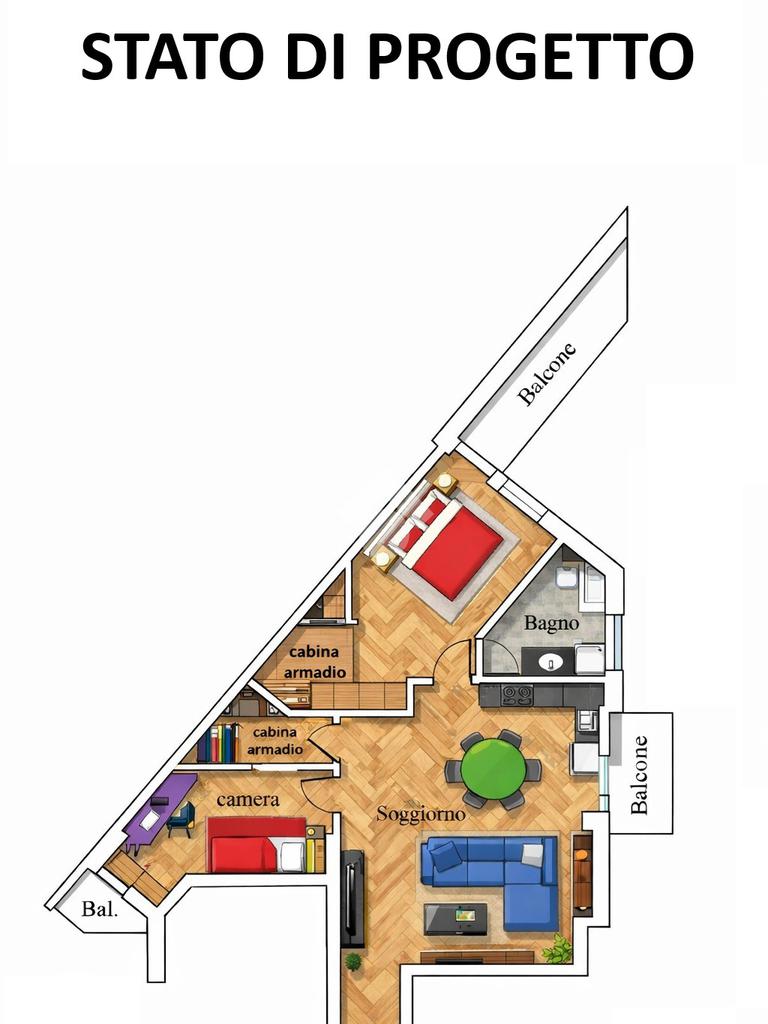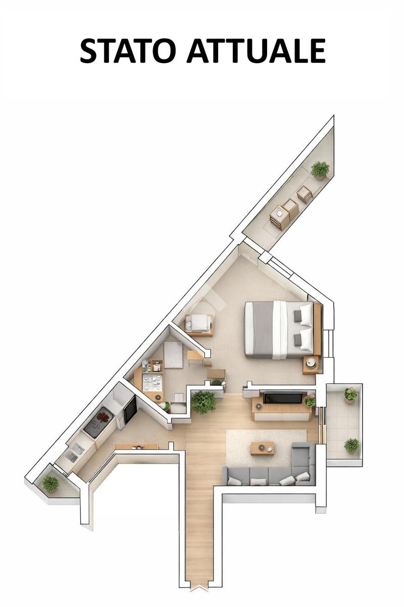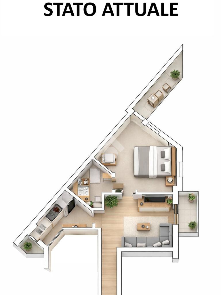L’appartamento si presenta con una distribuzione degli spazi funzionale ed è attualmente composto da ingresso, soggiorno luminoso con accesso al balcone, cucina abitabile anch’essa servita da balcone, pratico ripostiglio, bagno finestrato e un’ampia camera matrimoniale con ulteriore balcone. Gli ambienti risultano ariosi e ben illuminati grazie alla presenza di più affacci esterni.